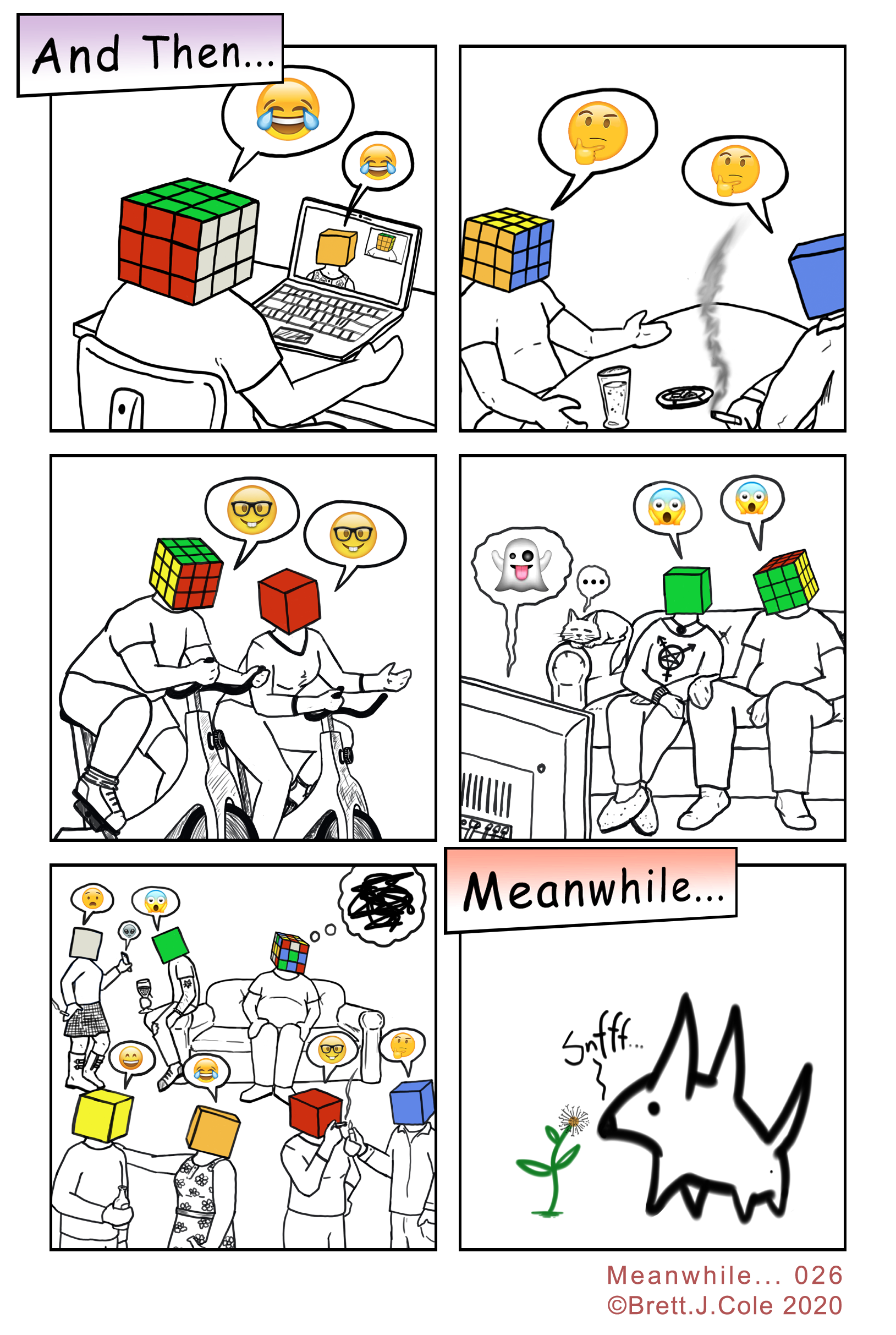 #brettjcole #meanwhileBJC #meanwhile #actuallyautistic #autisticart #autisticartist #autismacceptance #autism #drawing #illustrator #artistsoninstagram #cartoonist #art #writing #humor #satire #comics #socialmimicry #autisticburnout #loneliness #isolation #rubikscube